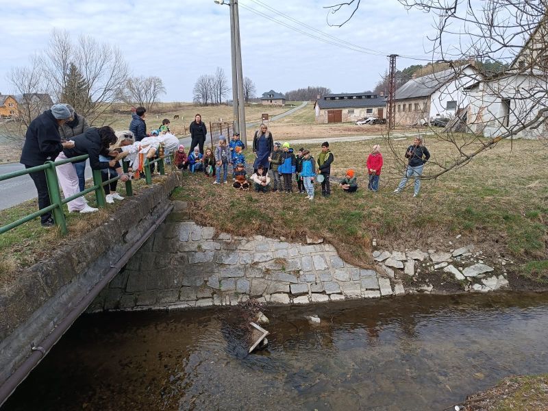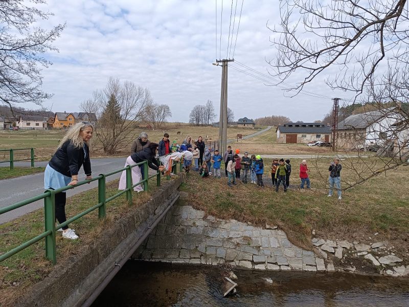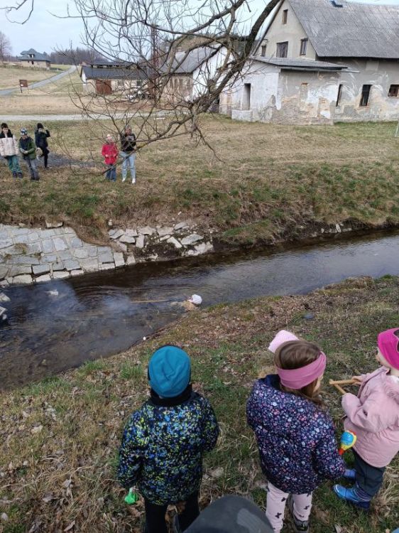 Společně se školáky jsme se dopoledne vypravili za hlasitého doprovodu řehtaček a bubínků vynést ZIMU (MORANU) a společně tak přivítat jaro. Děti se naučily několik básniček a písniček, za jejichž doprovodu paní ředitelka symbolicky vyhodila vyrobenou Moranu do potoka. Už se na tebe moc těšíme, JARO.