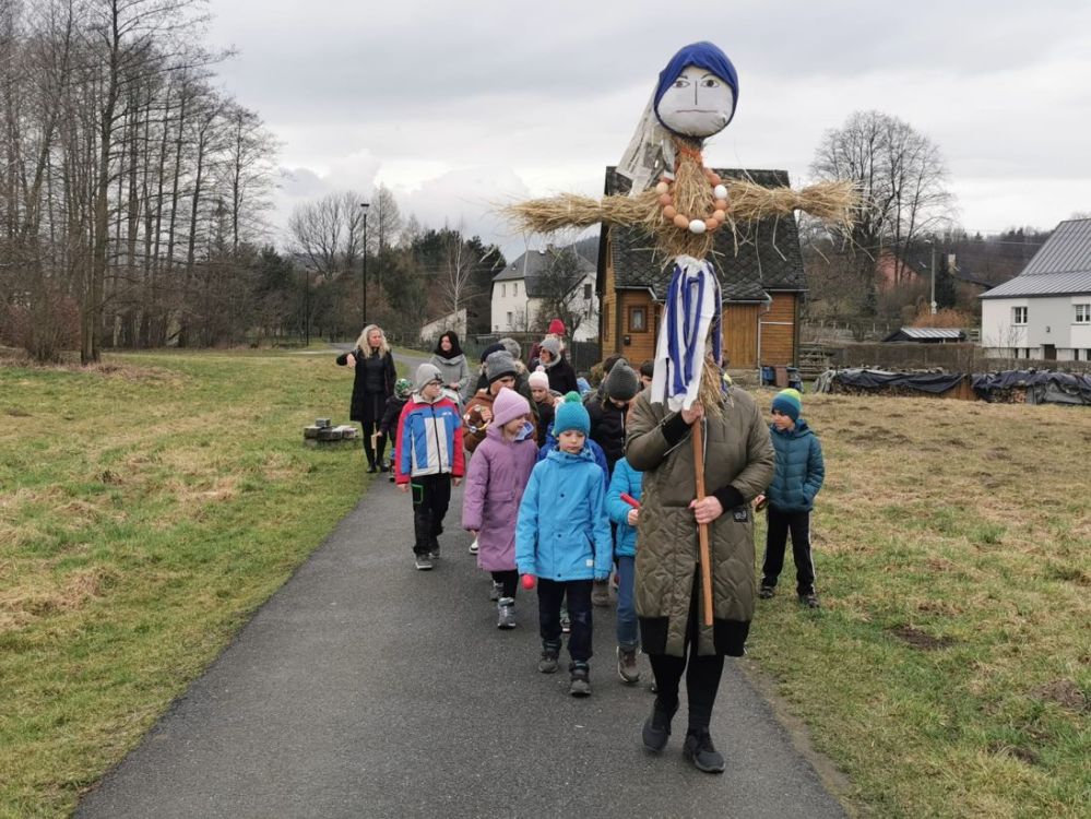 V první jarní den, 20. března 2023, jsme se společně se školáky vydali na průvod obcí, abychom vyhnali zimu, zahnali ji za hory a lesy a přivítali jaro. Počasí nám přálo, bylo opravdu jarní, a k našemu průvodu se přidalo i několik maminek. Tak snad je zima definitivně pryč.